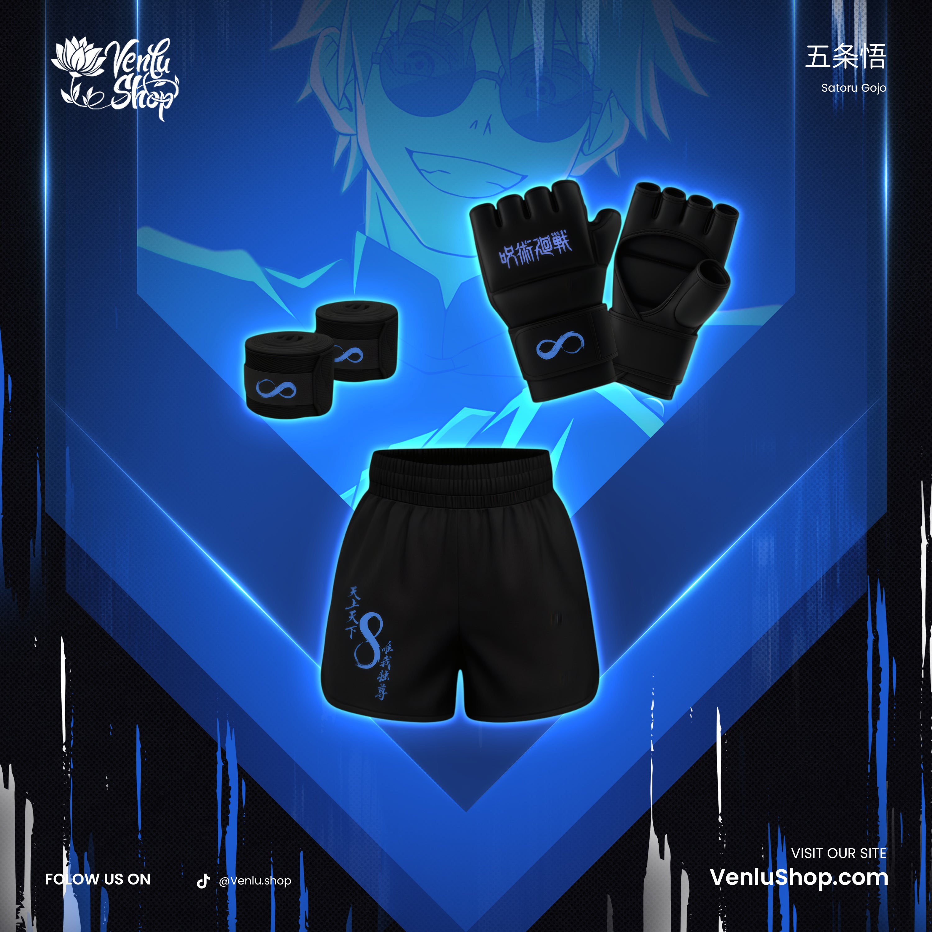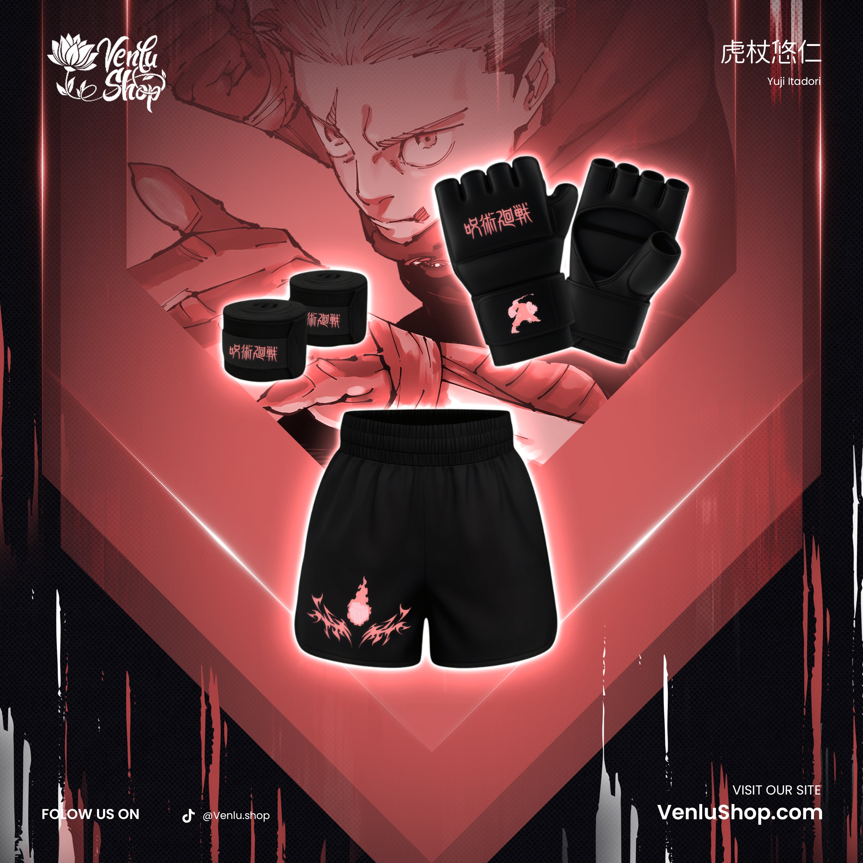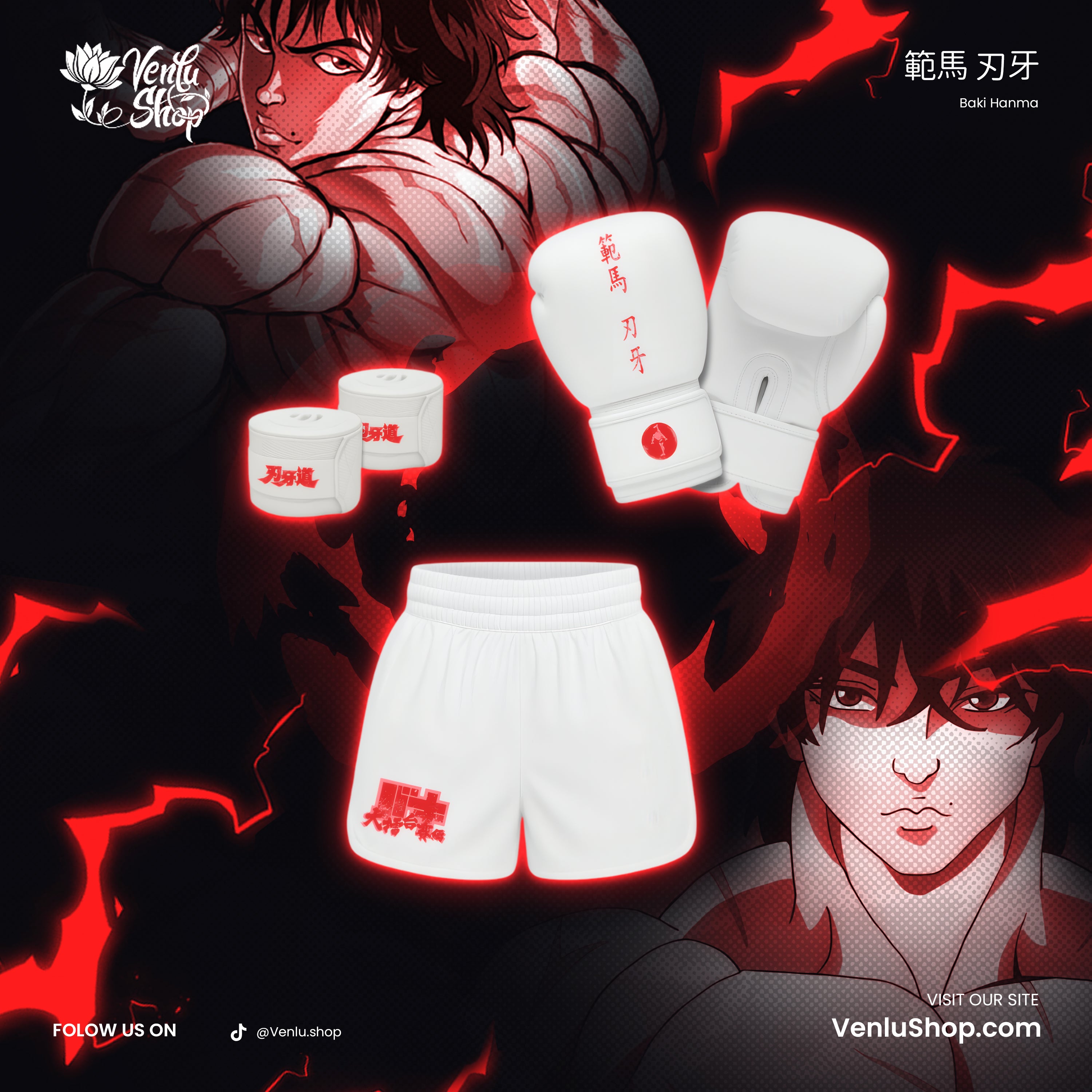 Our Boxing Sets inlcude Quality and long lasting MMA Gloves, Baggy Cotton Martial Art Shorts and a Stretchy 1,5 Meter long Bandage